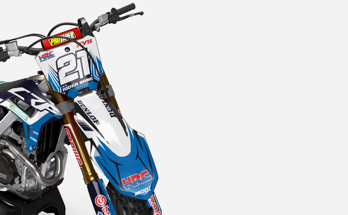 Custom motocros graphic kits for HONDA, designed for any dirt bike model and year. Our graphics kits are made using Substance materials, the industry’s leading print media for motocross and other power-sport applications.