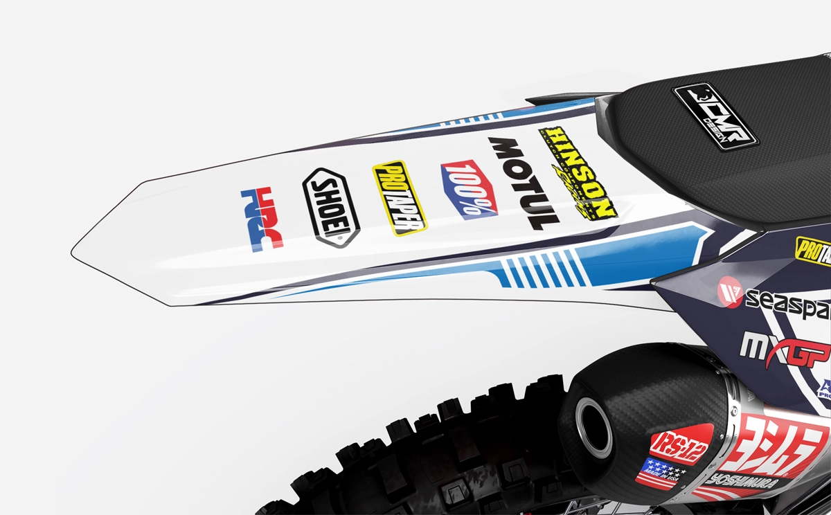 Motocross graphics kits are made using Substance materials only – industry leading print media for motocross and other power-sport applications. Developed alongside worlds best racers and tested in harsh conditions. FLO Technology eliminates bubbles and massively reduces installation time.