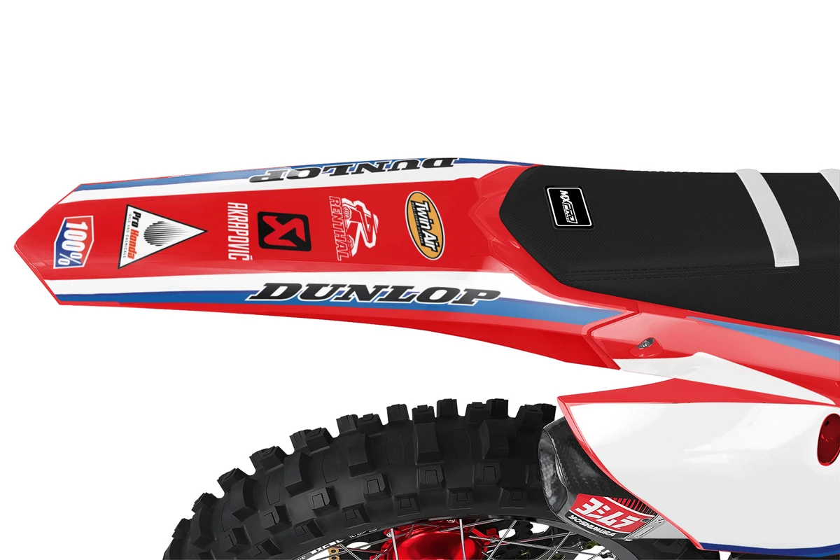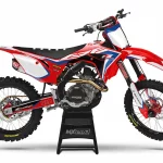 Custom motocros graphic kits for HONDA, designed for any dirt bike model and year. Our graphics kits are made using Substance materials, the industry’s leading print media for motocross and other power-sport applications. Developed alongside the world’s best racers and tested in harsh conditions, these graphics are built to withstand the rigors of off-road riding. With FLO Technology, installation is a breeze as it eliminates bubbles and massively reduces installation time, allowing you to spend more time on the track or trails. Stand out from the crowd and protect your bike with these high-quality, custom MX graphics.