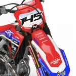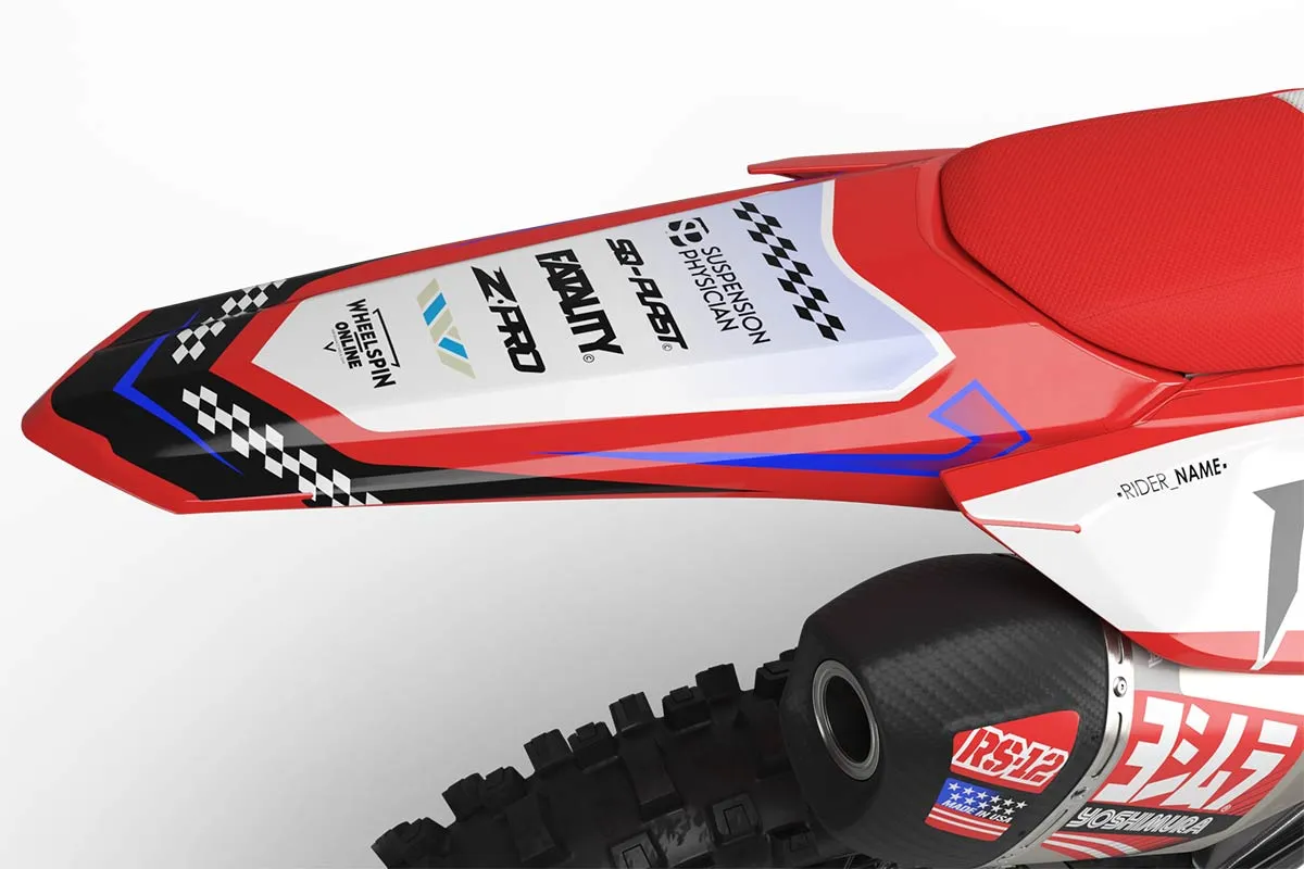 Custom motocros graphic kits for HONDA, designed for any dirt bike model and year. Our graphics kits are made using Substance materials, the industry’s leading print media for motocross and other power-sport applications. Developed alongside the world’s best racers and tested in harsh conditions, these graphics are built to withstand the rigors of off-road riding. With FLO Technology, installation is a breeze as it eliminates bubbles and massively reduces installation time, allowing you to spend more time on the track or trails. Stand out from the crowd and protect your bike with these high-quality, custom MX graphics.