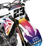 Custom motocros graphic kits for Honda, designed for any dirt bike model and year. Our graphics kits are made using Substance materials, the industry’s leading print media for motocross and other power-sport applications. Developed alongside the world’s best racers and tested in harsh conditions, these graphics are built to withstand the rigors of off-road riding. With FLO Technology, installation is a breeze as it eliminates bubbles and massively reduces installation time, allowing you to spend more time on the track or trails. Stand out from the crowd and protect your bike with these high-quality, custom MX graphics.
