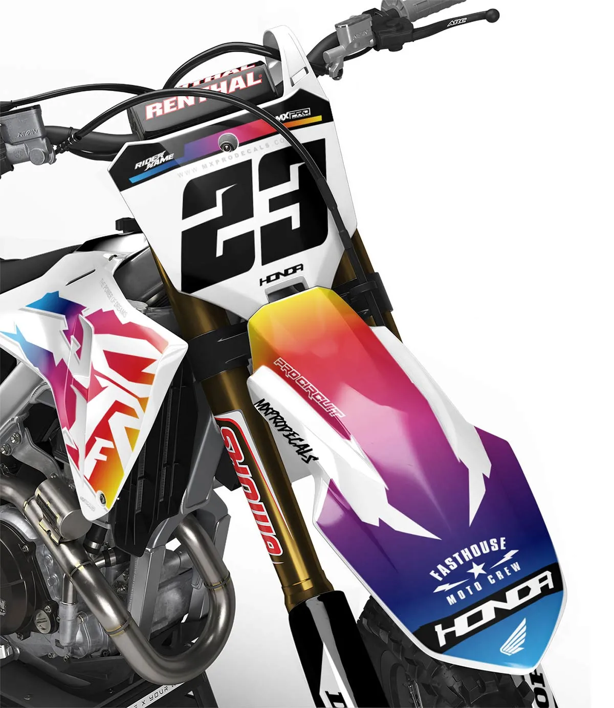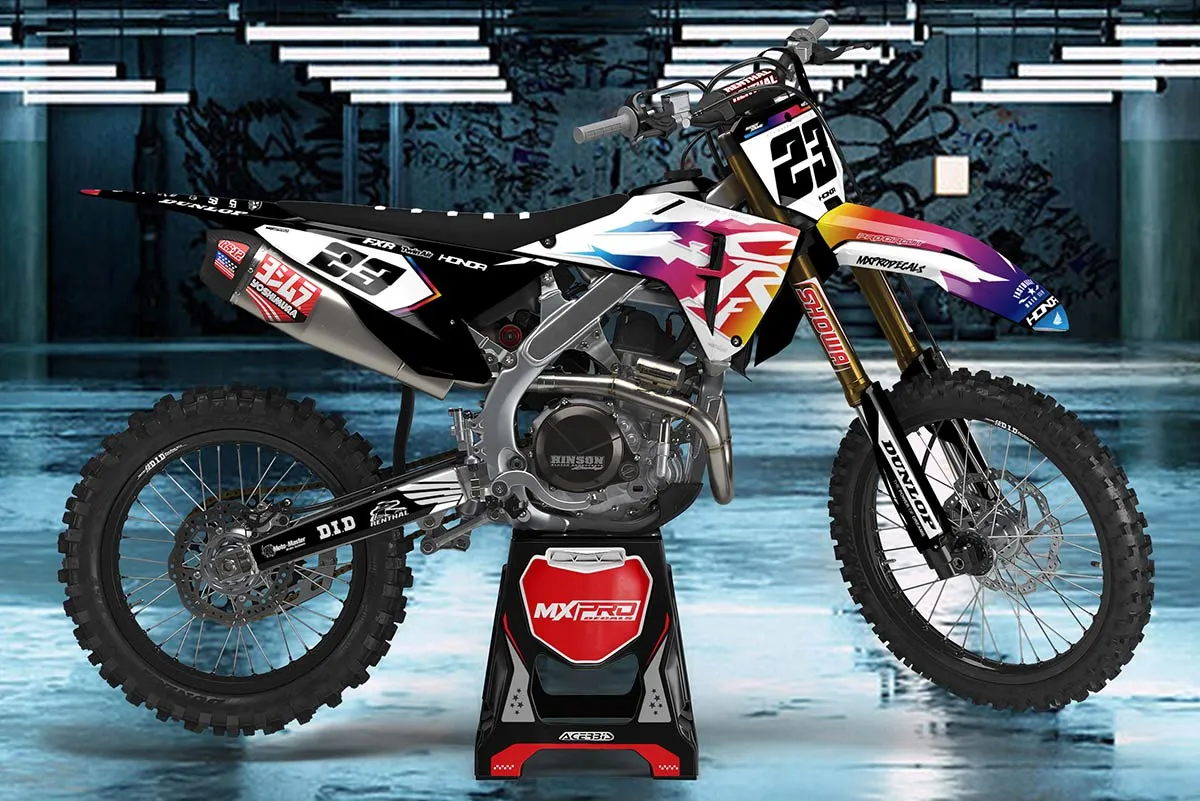 Custom motocros graphic kits for Honda, designed for any dirt bike model and year. Our graphics kits are made using Substance materials, the industry’s leading print media for motocross and other power-sport applications.