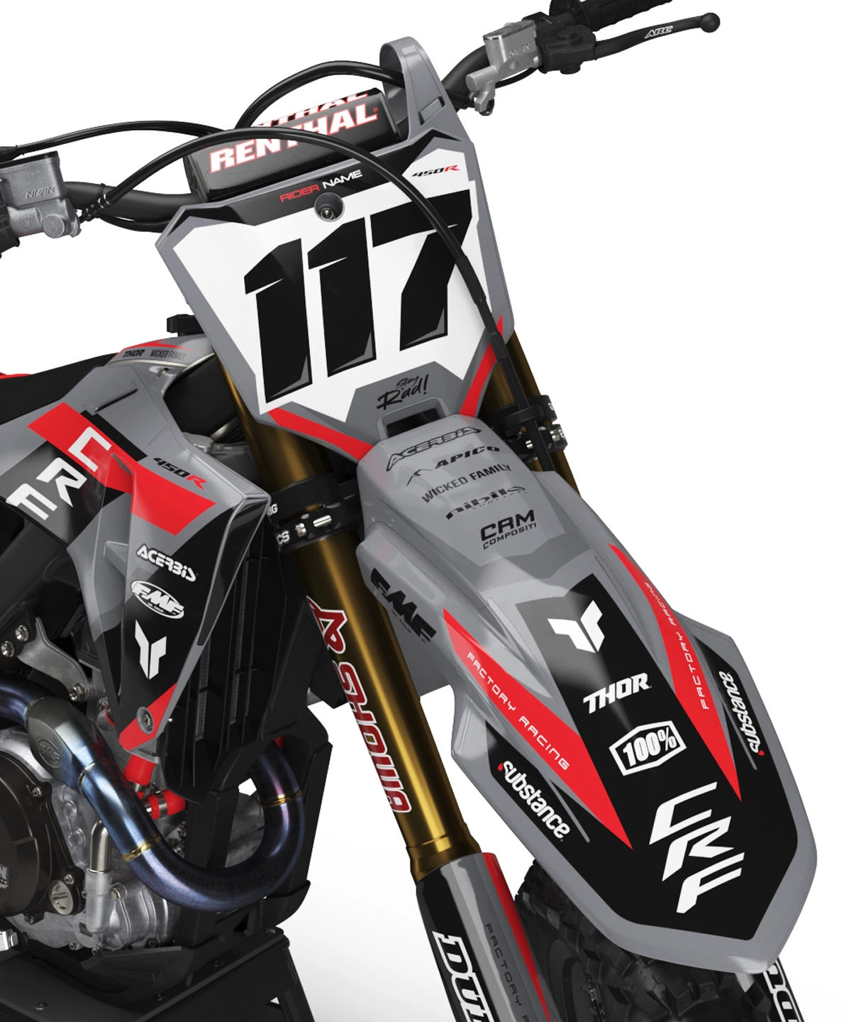 Custom motocros graphic kits for HONDA, designed for any dirt bike model and year. Our graphics kits are made using Substance materials, the industry’s leading print media for motocross and other power-sport applications.