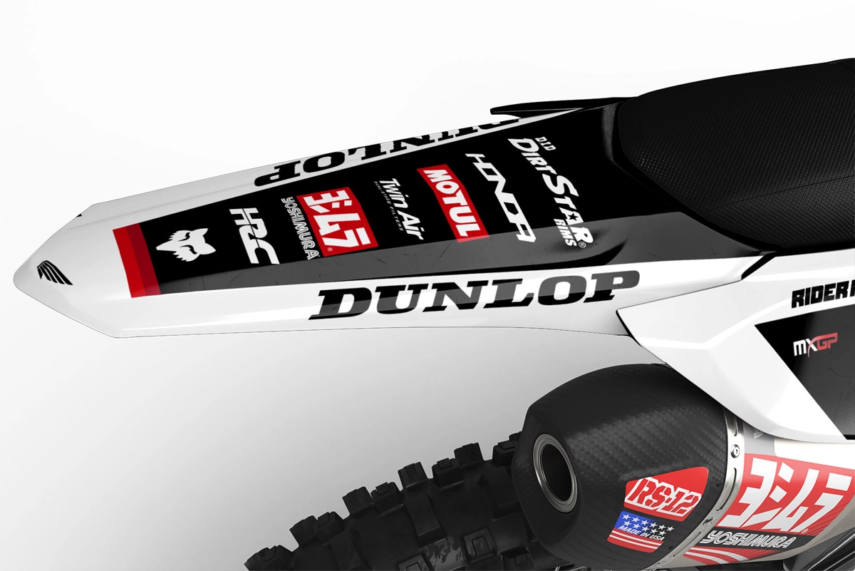 Custom motocros graphic kits for HONDA, designed for any dirt bike model and year. Our graphics kits are made using Substance materials, the industry’s leading print media for motocross and other power-sport applications. Developed alongside the world’s best racers and tested in harsh conditions, these graphics are built to withstand the rigors of off-road riding. With FLO Technology, installation is a breeze as it eliminates bubbles and massively reduces installation time, allowing you to spend more time on the track or trails. Stand out from the crowd and protect your bike with these high-quality, custom MX graphics.