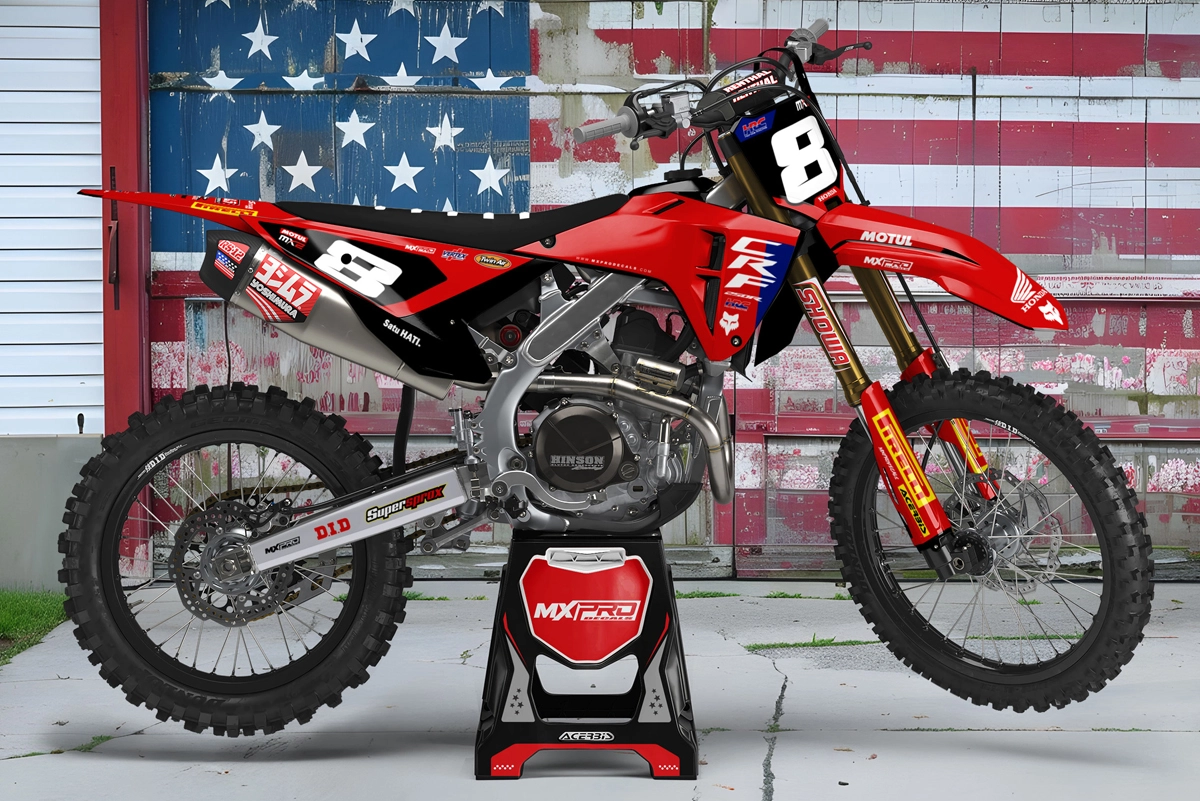 Custom motocros graphic kits for HONDA, designed for any dirt bike model and year. Our graphics kits are made using Substance materials, the industry’s leading print media for motocross and other power-sport applications.