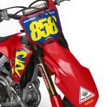 Custom motocros graphic kits for HONDA, designed for any dirt bike model and year. Our graphics kits are made using Substance materials, the industry’s leading print media for motocross and other power-sport applications. Developed alongside the world’s best racers and tested in harsh conditions, these graphics are built to withstand the rigors of off-road riding. With FLO Technology, installation is a breeze as it eliminates bubbles and massively reduces installation time, allowing you to spend more time on the track or trails. Stand out from the crowd and protect your bike with these high-quality, custom MX graphics.