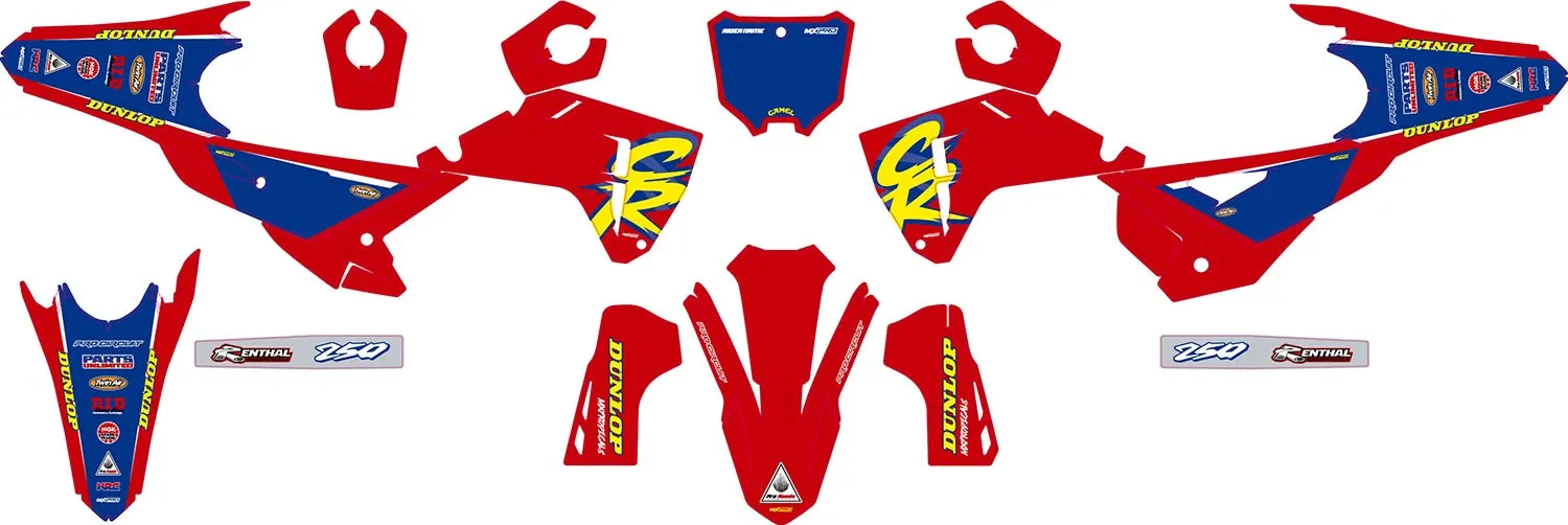 Custom motocros graphic kits for HONDA, designed for any dirt bike model and year. Our graphics kits are made using Substance materials, the industry’s leading print media for motocross and other power-sport applications.