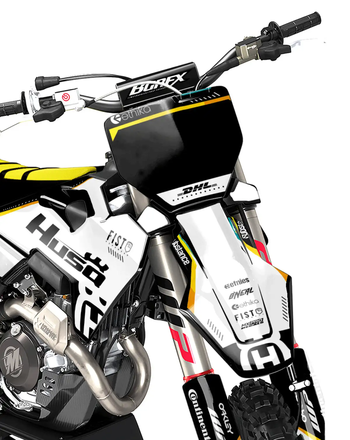 Custom motocros graphic kits for HUSQVARNA, designed for any dirt bike model and year. Our graphics kits are made using Substance materials, the industry’s leading print media for motocross and other power-sport applications.