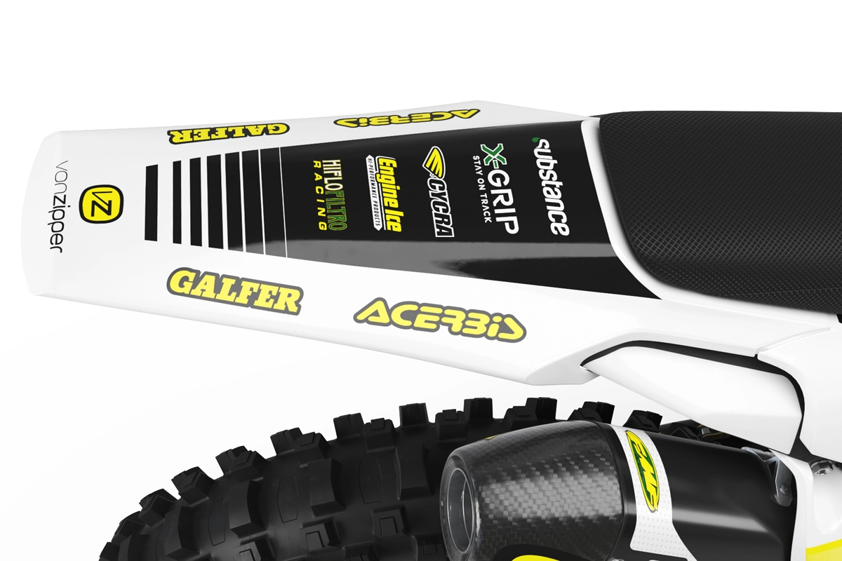 Custom motocros graphic kits for HUSQVARNA, designed for any dirt bike model and year. Our graphics kits are made using Substance materials, the industry’s leading print media for motocross and other power-sport applications. Developed alongside the world’s best racers and tested in harsh conditions, these graphics are built to withstand the rigors of off-road riding. With FLO Technology, installation is a breeze as it eliminates bubbles and massively reduces installation time, allowing you to spend more time on the track or trails. Stand out from the crowd and protect your bike with these high-quality, custom MX graphics.