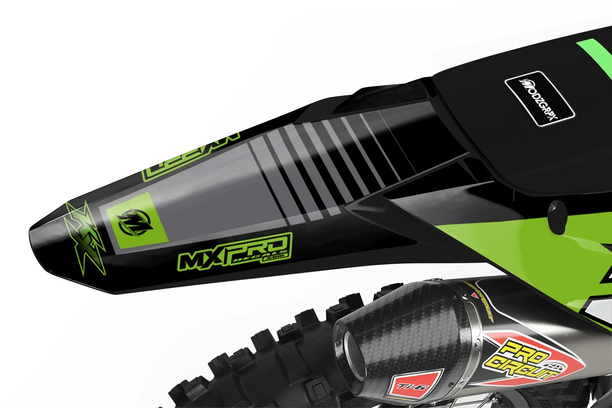 Custom motocros graphic kits for KAWASAKI, designed for any dirt bike model and year. Our graphics kits are made using Substance materials, the industry’s leading print media for motocross and other power-sport applications. Developed alongside the world’s best racers and tested in harsh conditions, these graphics are built to withstand the rigors of off-road riding. With FLO Technology, installation is a breeze as it eliminates bubbles and massively reduces installation time, allowing you to spend more time on the track or trails. Stand out from the crowd and protect your bike with these high-quality, custom MX graphics.