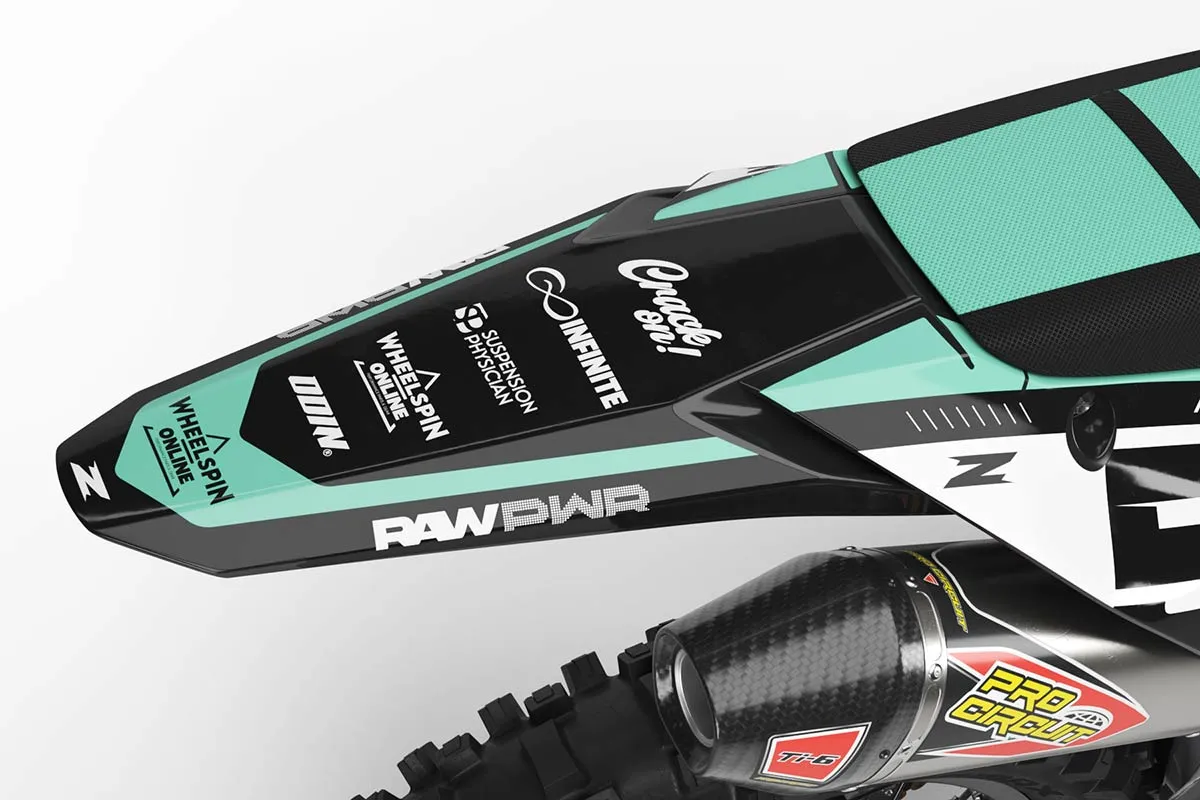 Motocross graphics kits are made using Substance materials only – industry leading print media for motocross and other power-sport applications. Developed alongside worlds best racers and tested in harsh conditions. FLO Technology eliminates bubbles and massively reduces installation time.