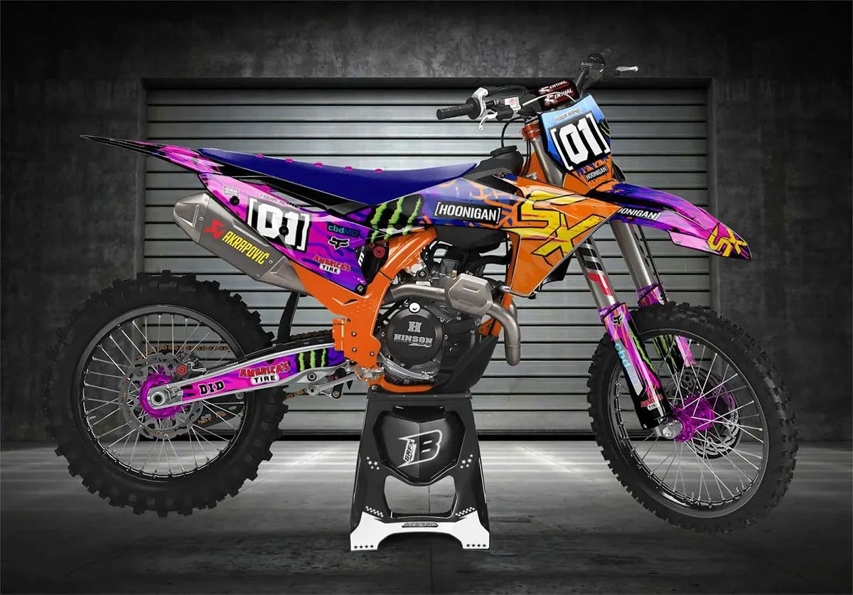 Custom motocros graphic kits for KTM, designed for any dirt bike model and year. Our graphics kits are made using Substance materials, the industry’s leading print media for motocross and other power-sport applications.
