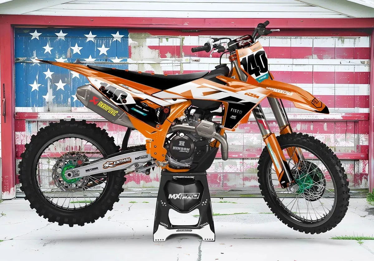 Custom motocros graphic kits for KTM, designed for any dirt bike model and year. Our graphics kits are made using Substance materials, the industry’s leading print media for motocross and other power-sport applications.