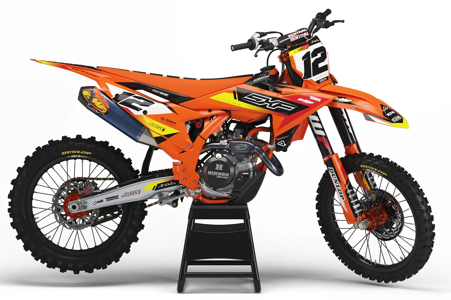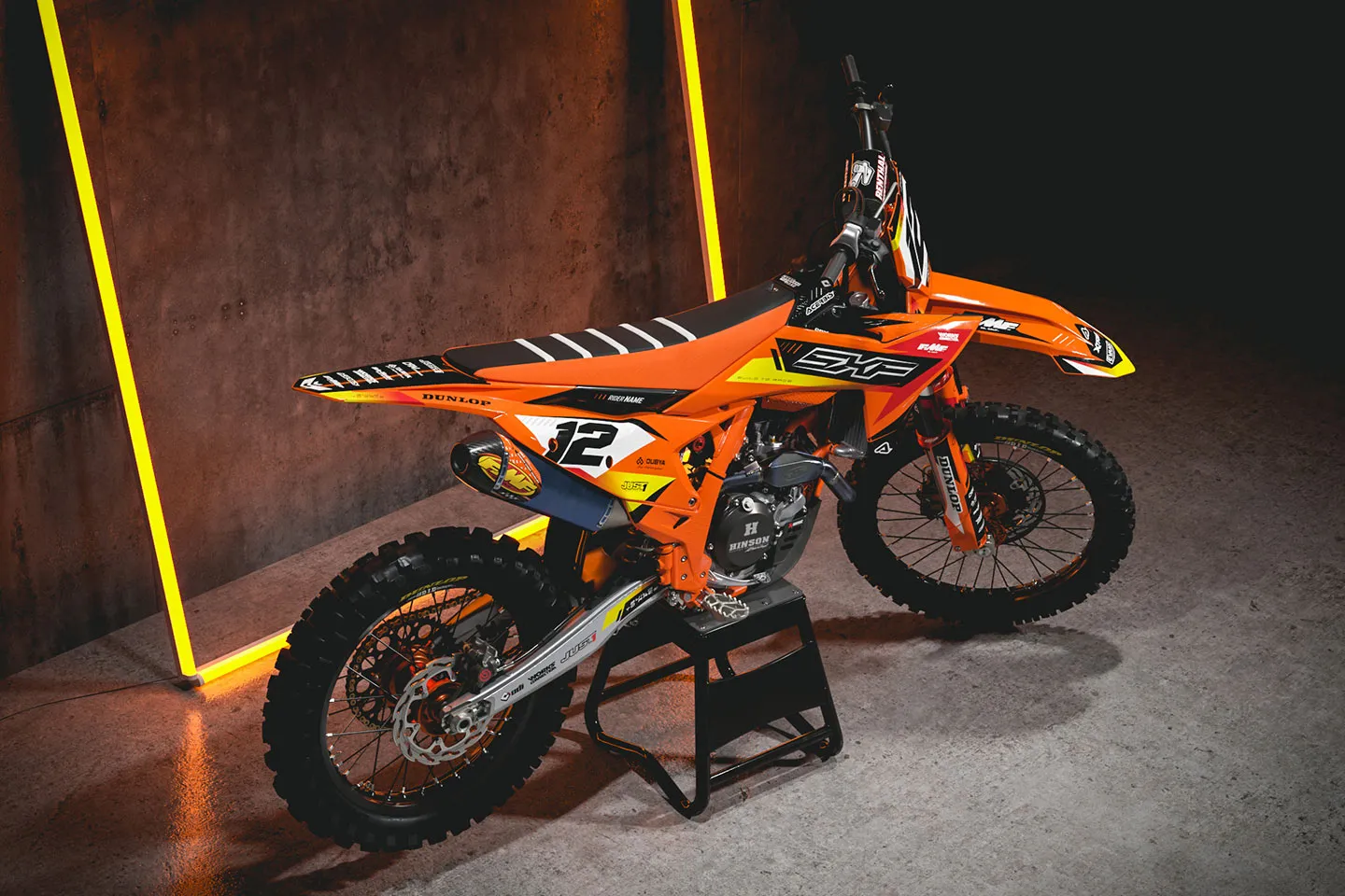 Custom motocros graphic kits for KTM, designed for any dirt bike model and year. Our graphics kits are made using Substance materials, the industry’s leading print media for motocross and other power-sport applications.