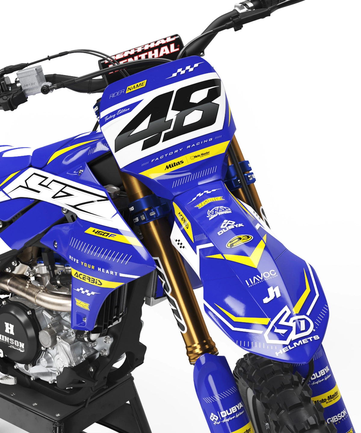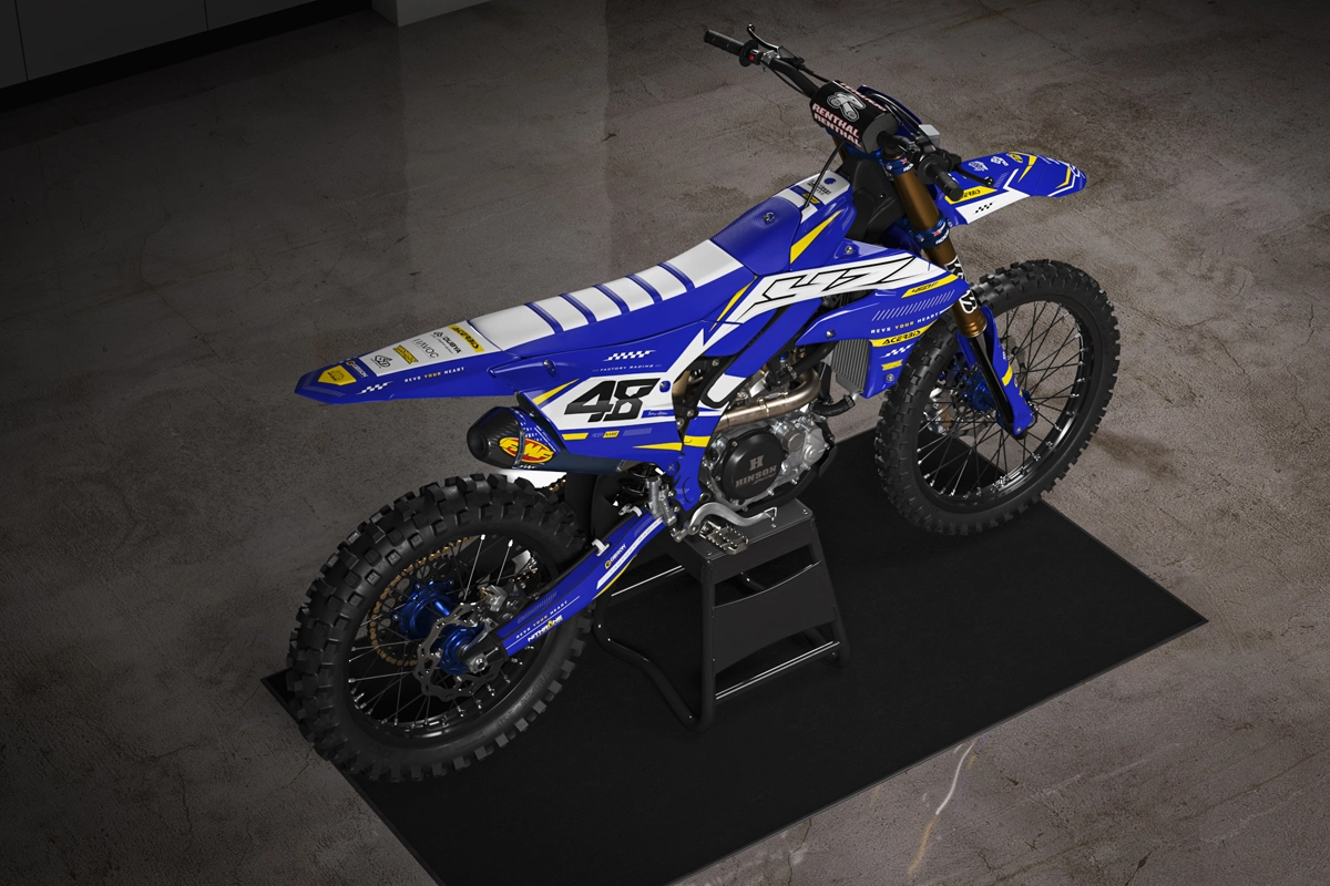 Custom motocros graphic kits for YAMAHA, designed for any dirt bike model and year. Our graphics kits are made using Substance materials, the industry’s leading print media for motocross and other power-sport applications. Developed alongside the world’s best racers and tested in harsh conditions, these graphics are built to withstand the rigors of off-road riding. With FLO Technology, installation is a breeze as it eliminates bubbles and massively reduces installation time, allowing you to spend more time on the track or trails. Stand out from the crowd and protect your bike with these high-quality, custom MX graphics.