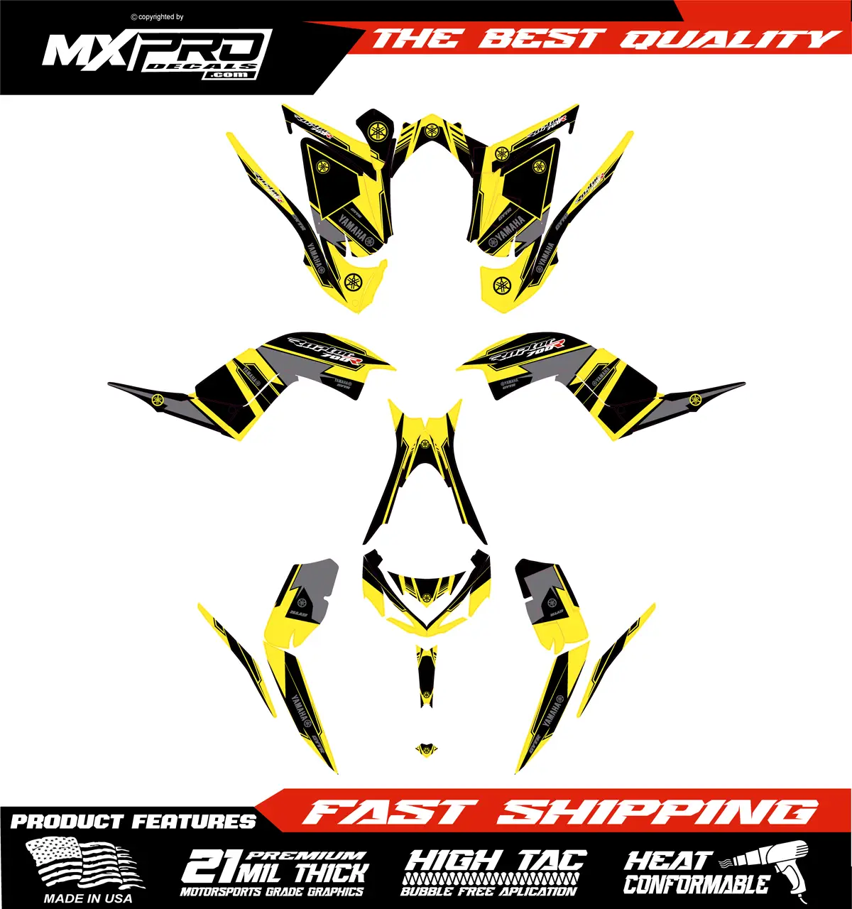 Custom ATV Yamaha Raptor 700 2013 to 2025 graphic kit. Our graphics kits are made using Substance materials, the industry’s leading print media for motocross and other power-sport applications. Developed alongside the world’s best racers and tested in harsh conditions, these graphics are built to withstand the rigors of off-road riding. With FLO Technology, installation is a breeze as it eliminates bubbles and massively reduces installation time, allowing you to spend more time on the track or trails. Stand out from the crowd and protect your bike with these high-quality, custom MX graphics.