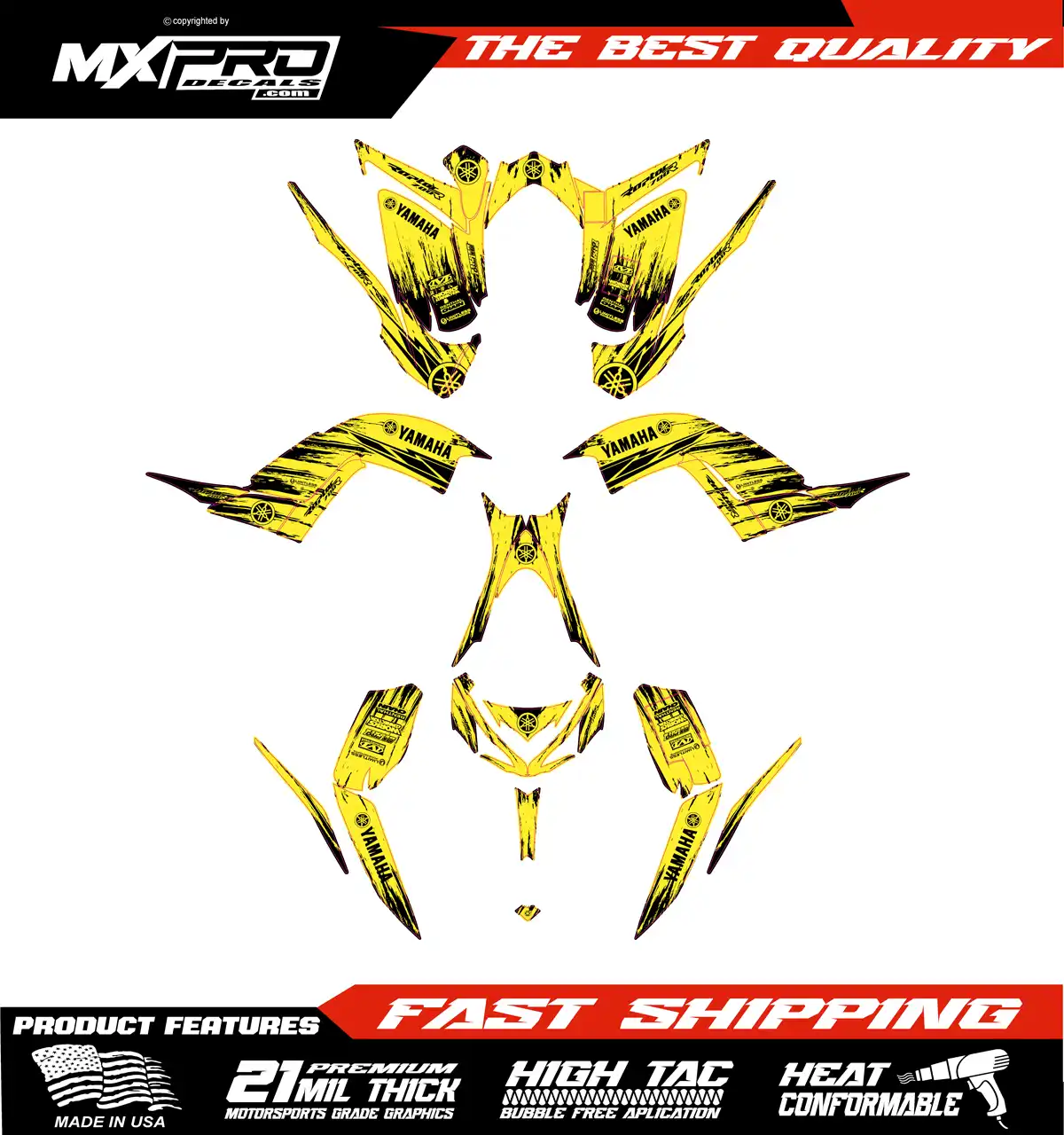 Custom ATV Yamaha Raptor 700 2013 to 2025 graphic kit. Our graphics kits are made using Substance materials, the industry’s leading print media for motocross and other power-sport applications. Developed alongside the world’s best racers and tested in harsh conditions, these graphics are built to withstand the rigors of off-road riding. With FLO Technology, installation is a breeze as it eliminates bubbles and massively reduces installation time, allowing you to spend more time on the track or trails. Stand out from the crowd and protect your bike with these high-quality, custom MX graphics.