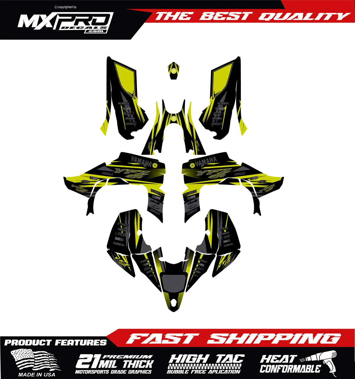 Custom ATV Yamaha Raptor 700 2014 to 2025 graphic kit. Our graphics kits are made using Substance materials, the industry’s leading print media for motocross and other power-sport applications. Developed alongside the world’s best racers and tested in harsh conditions, these graphics are built to withstand the rigors of off-road riding. With FLO Technology, installation is a breeze as it eliminates bubbles and massively reduces installation time, allowing you to spend more time on the track or trails. Stand out from the crowd and protect your bike with these high-quality, custom MX graphics.
