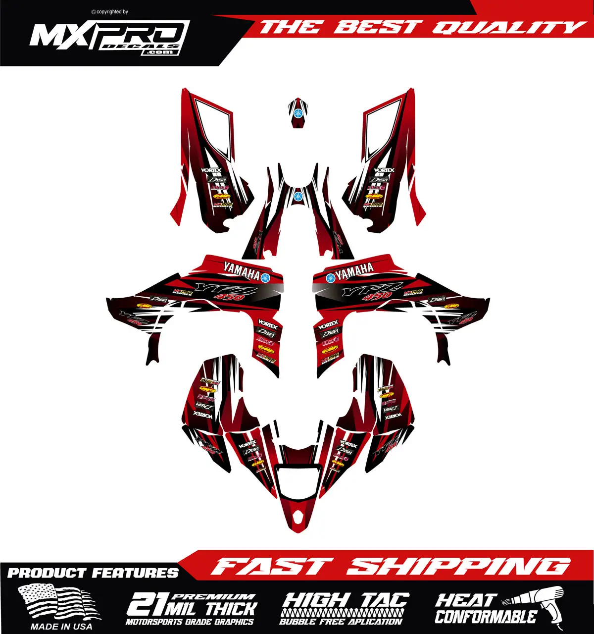 Custom ATV Yamaha Raptor 700 2003 to 2012 graphic kit. Our graphics kits are made using Substance materials, the industry’s leading print media for motocross and other power-sport applications.