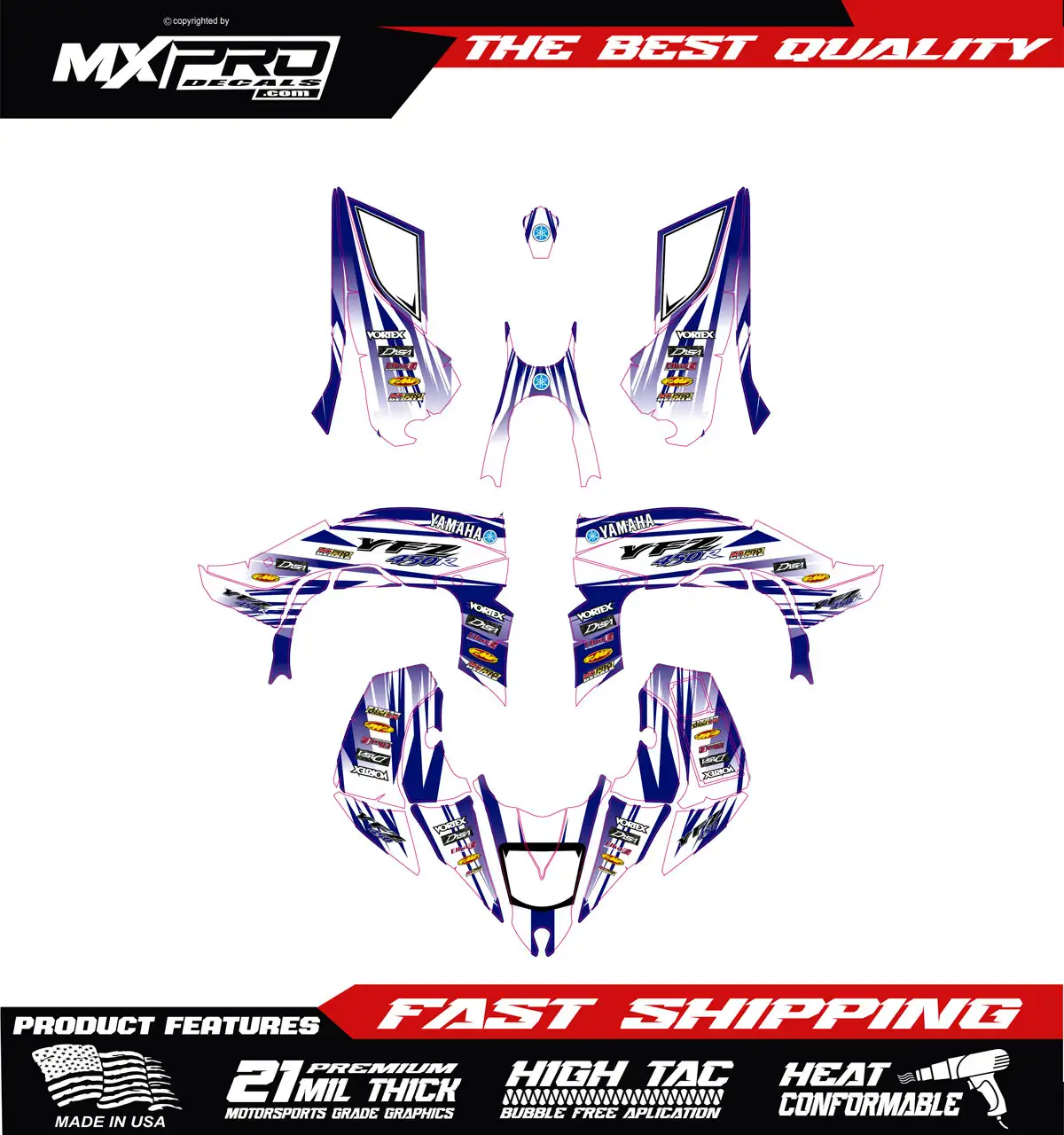 • If you would like to use personal logos you can email them to info@mxprodecals.com with your order number and name in the subject line (after order placement).