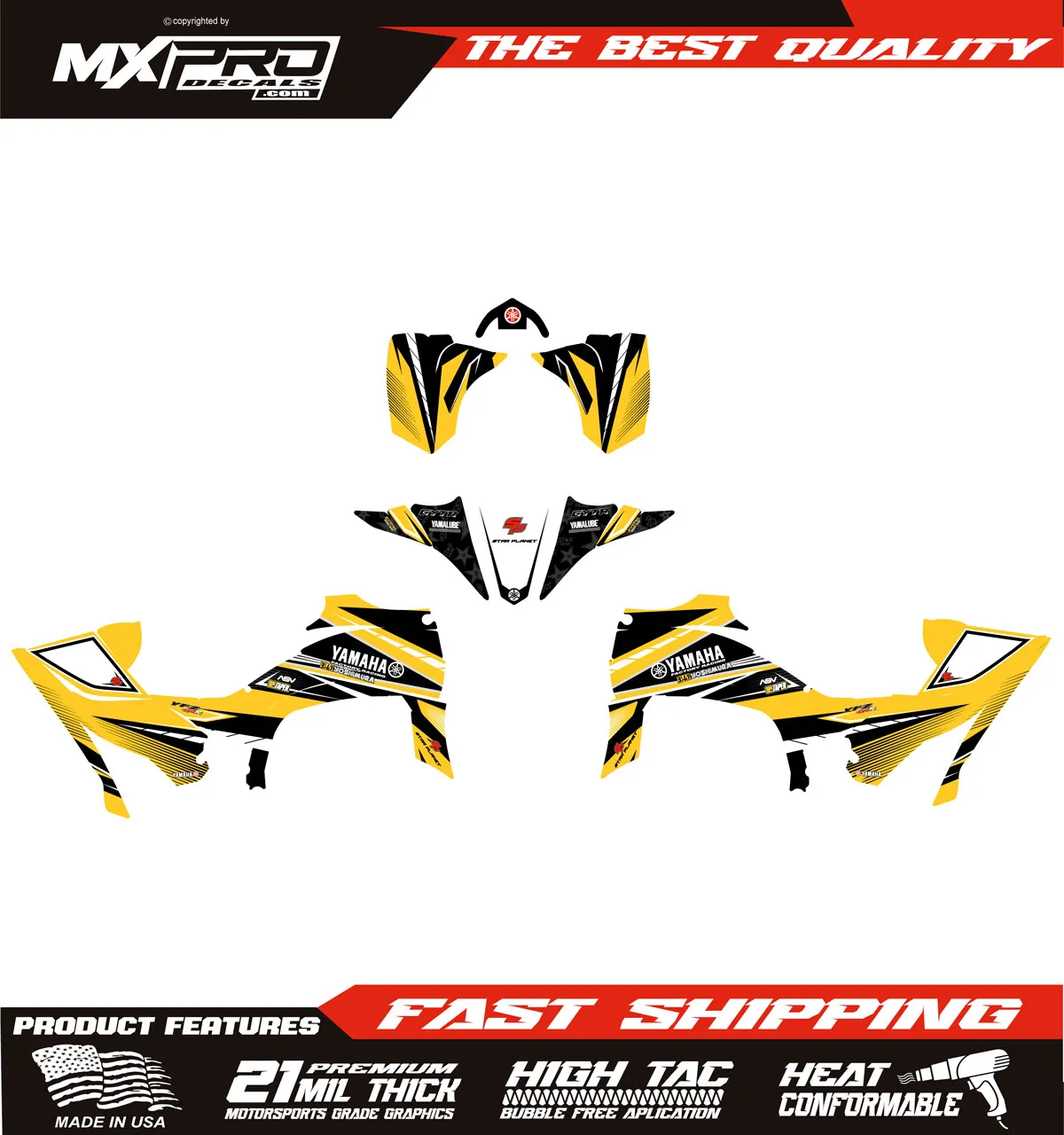 Custom ATV Yamaha Raptor 700 2014 to 2025 graphic kit. Our graphics kits are made using Substance materials, the industry’s leading print media for motocross and other power-sport applications. Developed alongside the world’s best racers and tested in harsh conditions, these graphics are built to withstand the rigors of off-road riding. With FLO Technology, installation is a breeze as it eliminates bubbles and massively reduces installation time, allowing you to spend more time on the track or trails. Stand out from the crowd and protect your bike with these high-quality, custom MX graphics.